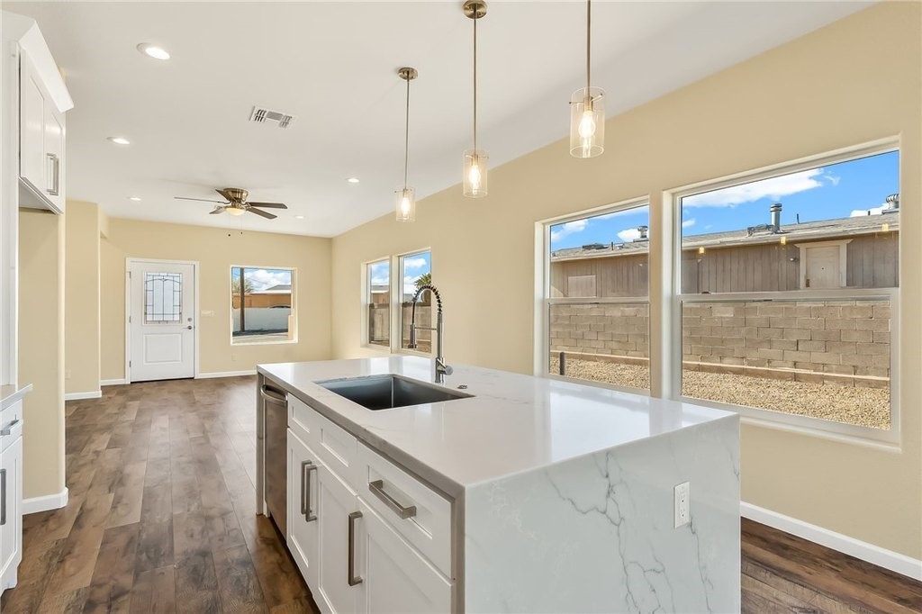 Welcome to brand-new construction at 1869 Avalon Dr. in Bullhead City! This 1,248 sq ft home offers a smart and efficient layout with 3 bedrooms and 2 bathrooms, perfect for a first-time buyer, downsizer, or investor looking for a turnkey opportunity. Enjoy 9-foot ceilings and abundant natural light from multiple windows, creating a bright and open living space. The kitchen features a gas stove/range, while the home also includes washer/gas dryer hookups and an electric water heater for everyday convenience. Durable 14mm laminate flooring flows throughout, complemented by a tile roof for long-term peace of mind. Outside, you'll find a spacious side yard with room for RV parking or desert toys, plus a 2-car garage-all in a no HOA community, giving you freedom and flexibility. Super affordable and completely brand new-this is an excellent opportunity for a starter home or rental investment. Builder is motivated and wants it sold! Don't miss your chance to own new construction in Bullhead City at an exceptional value.
